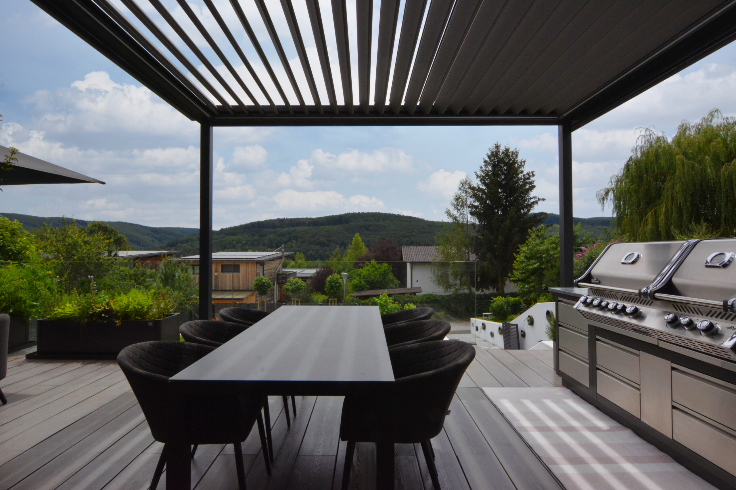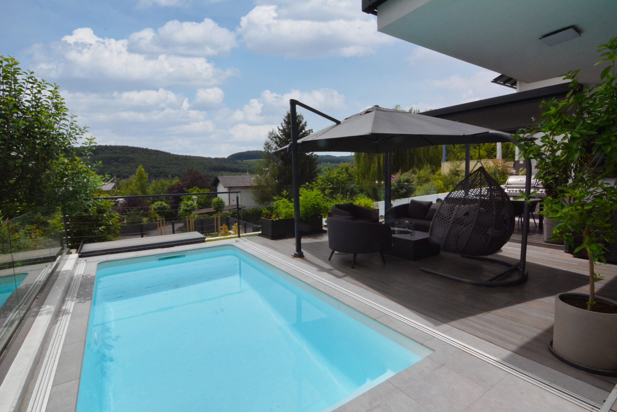 Lassen Sie sich von der harmonischen Verbindung zwischen Architektur und Natur verzaubern, während Sie den Blick auf die liebevoll gestaltete Umgebung genießen. Hochwertige Materialien und sorgfältig durchdachte Details schaffen ein einzigartiges Wohnambiente, das Ihre Träume wahr werden lässt und gleichzeitig ein Gefühl von Sicherheit und Geborgenheit vermittelt.